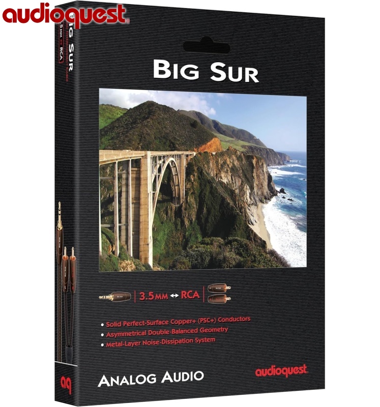 Big Sur je ideální audio kabel (2 × RCA – 2 × RCA). Audioquest zvolil pro jeho výrobu vodiče z pevných měděných drátů s perfektním povrchem (PSC+), tento materiál má nevídaně jemný a čistý povrch. Proprietární technologie Audioquestu chrání povrch materiálu ve všech fázích výroby. Udržuje-li se vysoce čistá bezkyslíkatá měď měkká, čistá a hladká, stává se během procesu výborným nízko-ztrátovým PSC+ vodičem. Výsledný zvuk je pak mnohem více zaměřen na věrnost a čistotu než při použití běžných materiálů. Již přes 30 let dělá Audioquest pokroky na poli používání výběrových materiálů, a přesto byl skok v kvalitě, který PSC+ umožnila, ohromující; technologie PSC+ zkrátka nabízí nesrovnatelně lepší výsledky v porovnání s běžně dostupnou mědí jakékoliv cenové kategorie.