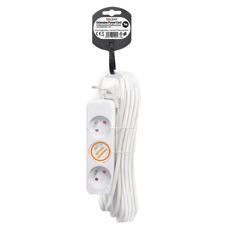 Úvod » Kabely » Napájení - prodlužovačky » Solight prodlužovací přívod, 3 zásuvky, bílý, 7m