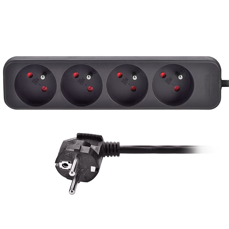 Úvod » Kabely » Napájení - prodlužovačky » Solight prodlužovací přívod, 4 zásuvky, černý, 3m