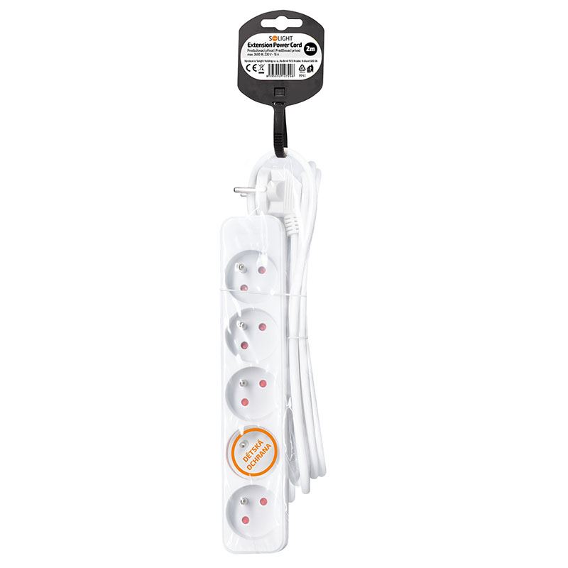 Úvod » Kabely » Napájení - prodlužovačky » Solight prodlužovací přívod, 5 zásuvek, bílý, 2m