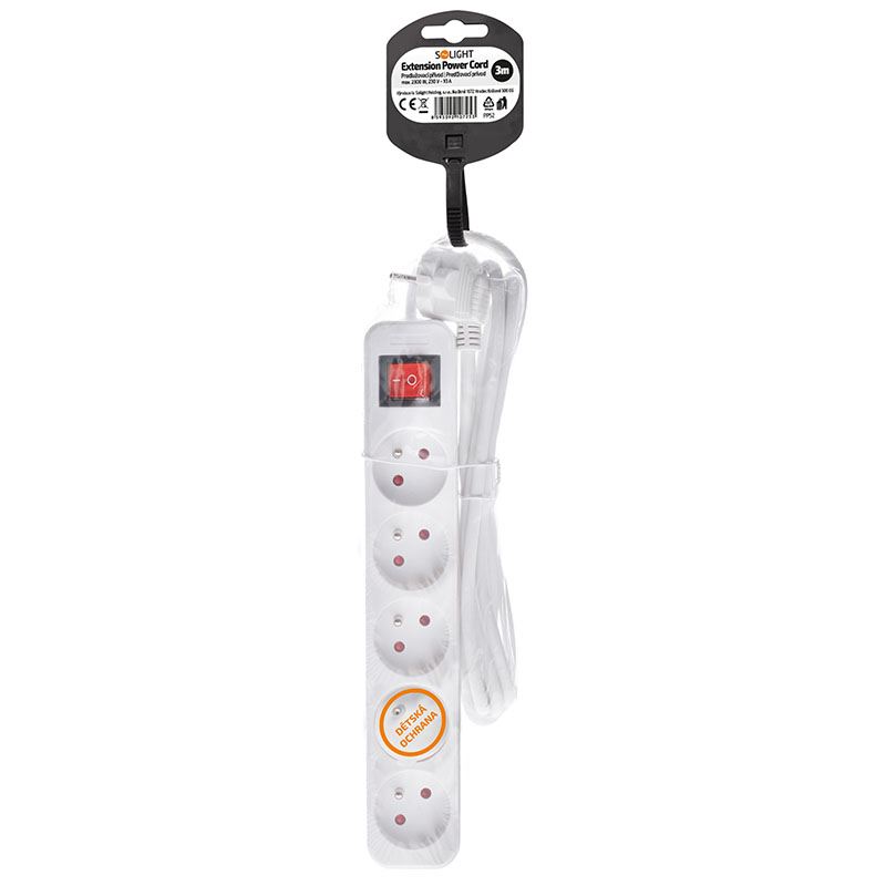 Úvod » Kabely » Napájení - prodlužovačky » Solight prodlužovací přívod, 5 zásuvek, bílý, vypínač, 3m