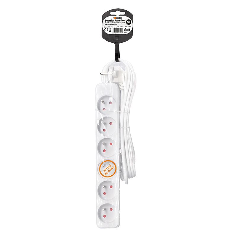 Úvod » Kabely » Napájení - prodlužovačky » Solight prodlužovací přívod, 6 zásuvek, bílý, 5m