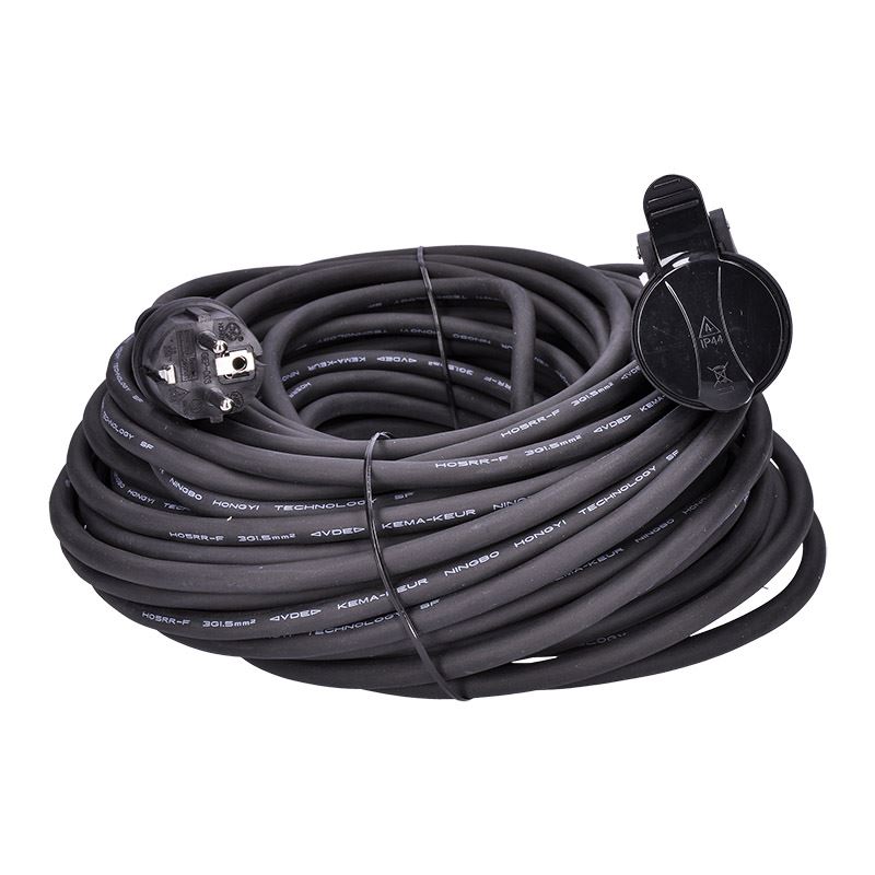 Úvod » Kabely » Napájení - prodlužovačky » Solight prodlužovací přívod - spojka, 1 zásuvka, 30m, 3 x 1,5mm2, gumová, černá